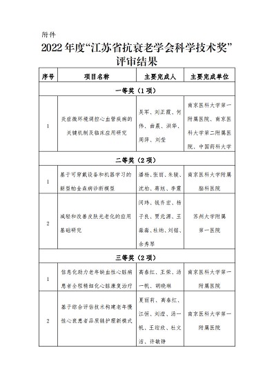 2022年度江苏省抗衰老学会科学技术奖评审结果公示