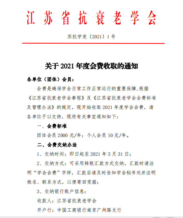 学会关于2021年度会费收取的通知